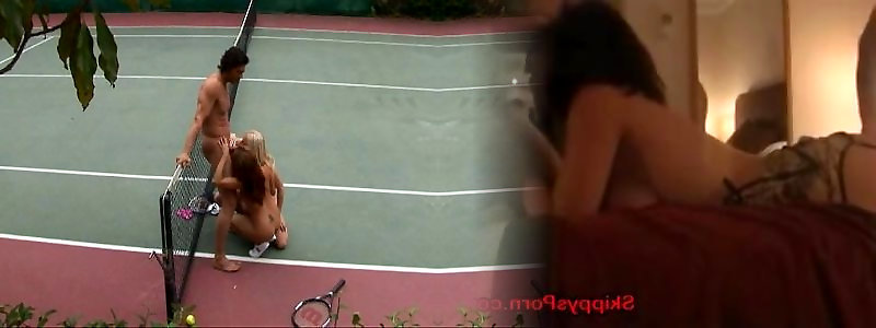 nubile pulverizado en el culo en la pista de tenis