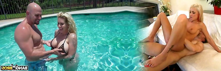 maldita hembra brillante meaty titted ryan conner se montó en la parte trasera de la piscina