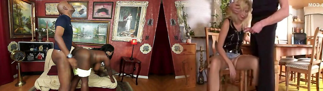 une adolescente blonde suce profondément une grosse bite noire avant de faire lamour en missionnaire