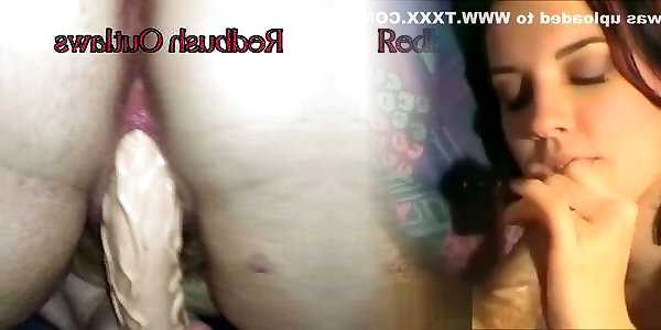 rousse suce papa tout en chevauchant un gode