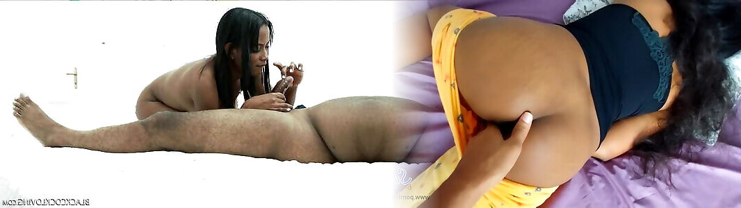 une colombienne noire excitée twerks et suce une bite noire