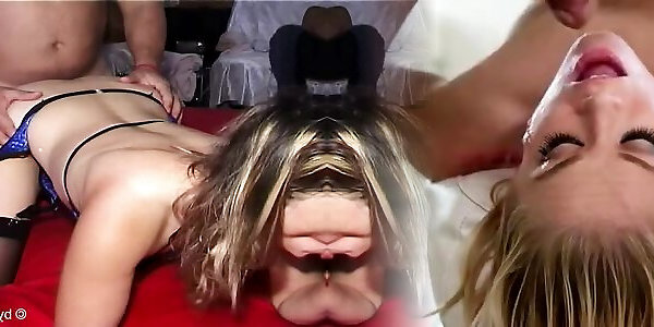 des poitrines pendantes, blondinette dans une saucisse dhomme aux cheveux foncés