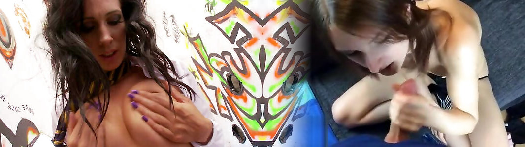 salope espiègle en uniforme suce profondément la bite à travers la fente de gloire