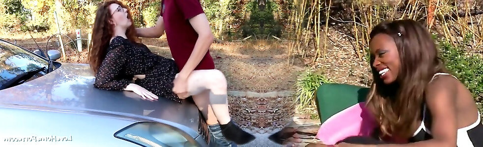 bombasse adolescente aux cheveux roux labourée à lextérieur sur la voiture et reçue