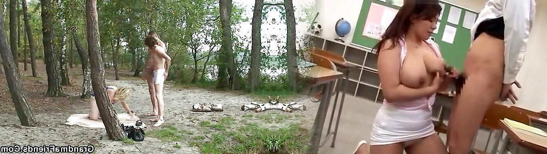 grand-mère blonde bien roulée pilonnée par deux garçons à lextérieur