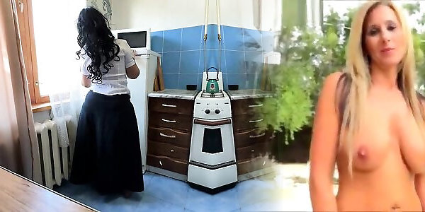 après un jet durine tiède, ma belle-mère me suce la bite dans la cuisine et se masturbe en collants