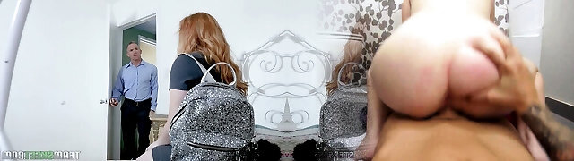 Red haired step daughter-in-law Lucy Foxx seduces her step dad and enjoys sucking his pole
