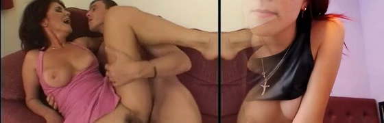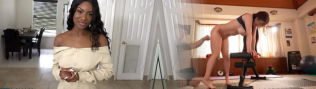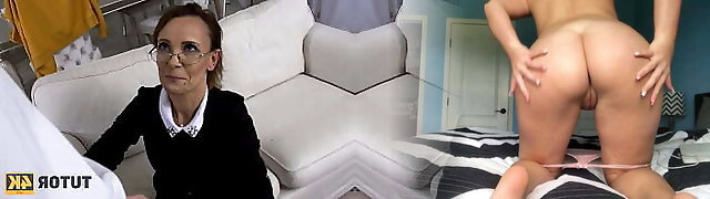 White step-mother helps her black stepson to jack off huge black penis