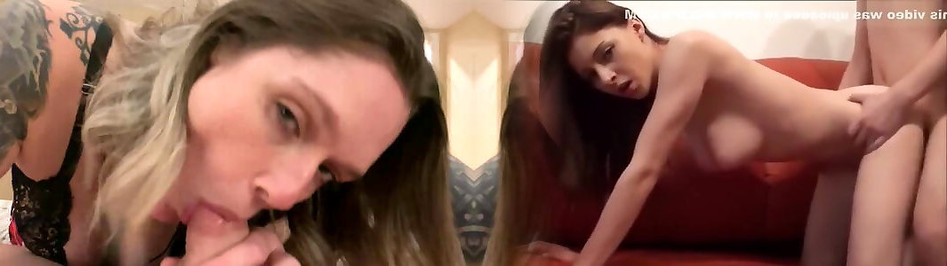 due ragazze giocherellona scopare con un doppio dildo ended prima di ottenere disossato da un uomo