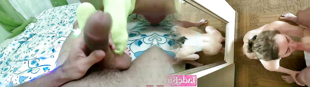 dilettante handjob con stinky calzino culto e un enorme sborrata
