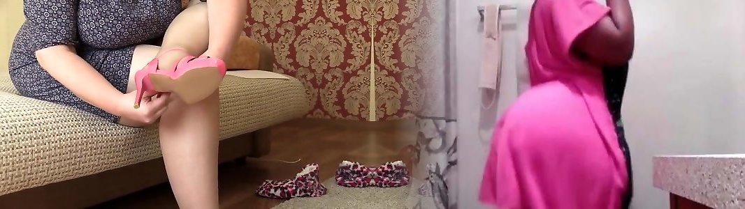 una damigella matura veste collant di nylon e scarpe alte
