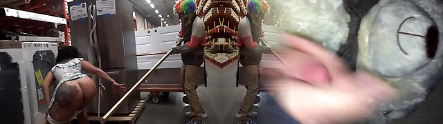 Provocative Latina shows giant ass in public and gets licked by clown