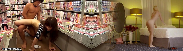 Hairy pussy of lusty Yukina Aizawa is fucked by lewd dudes in romp shop