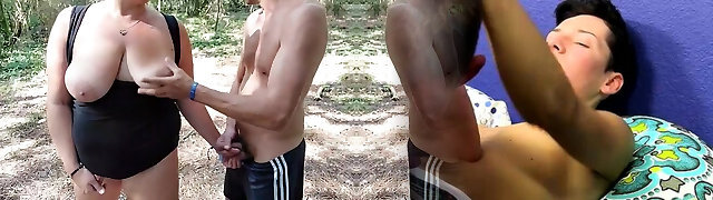 3 Curious Sexy British Babes Play With the Guy's Cock In Hot Outdoor CFNM Episode