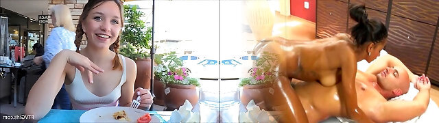 Beautiful teen bangs strangers giant dick