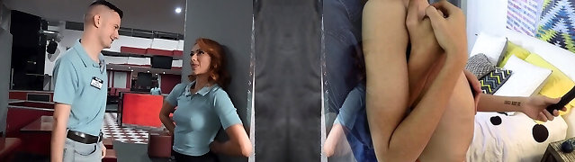 Milf manager dominates busty redhead babe
