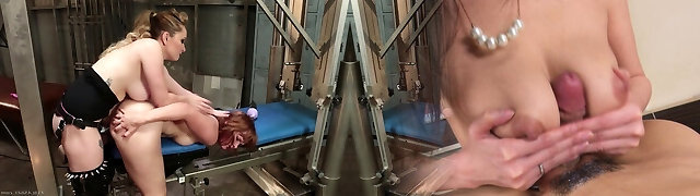 Predominant lesbian tormenting young lezzie with the lash and strapon by Femdom Austria