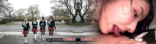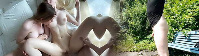 Big mature spunk-pump bangs two young pussies in public