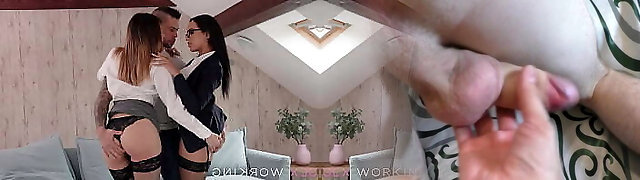Audition agents Katrina Moreno and Penelope Cross FFM hardcore threesome with big dick porn starlet