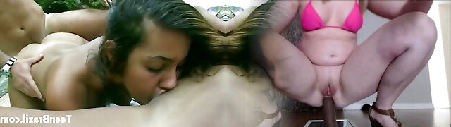 Shy black haired teen with sexy ass enjoyed hot three way with her buddies