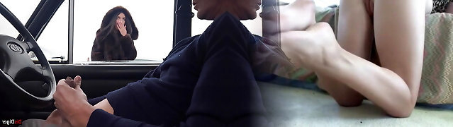 Stranger girl fap off and sucked my dick through a car window in a public parking lot