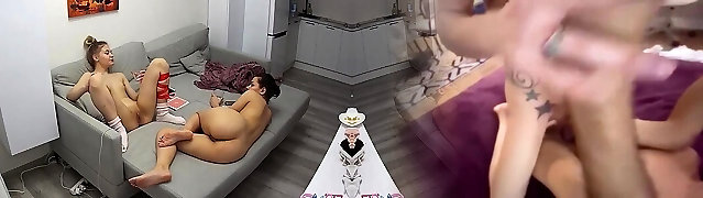 Wife And Family Friend Pummel On The Couch Before Her Husband Comes Home.Real Cuckold